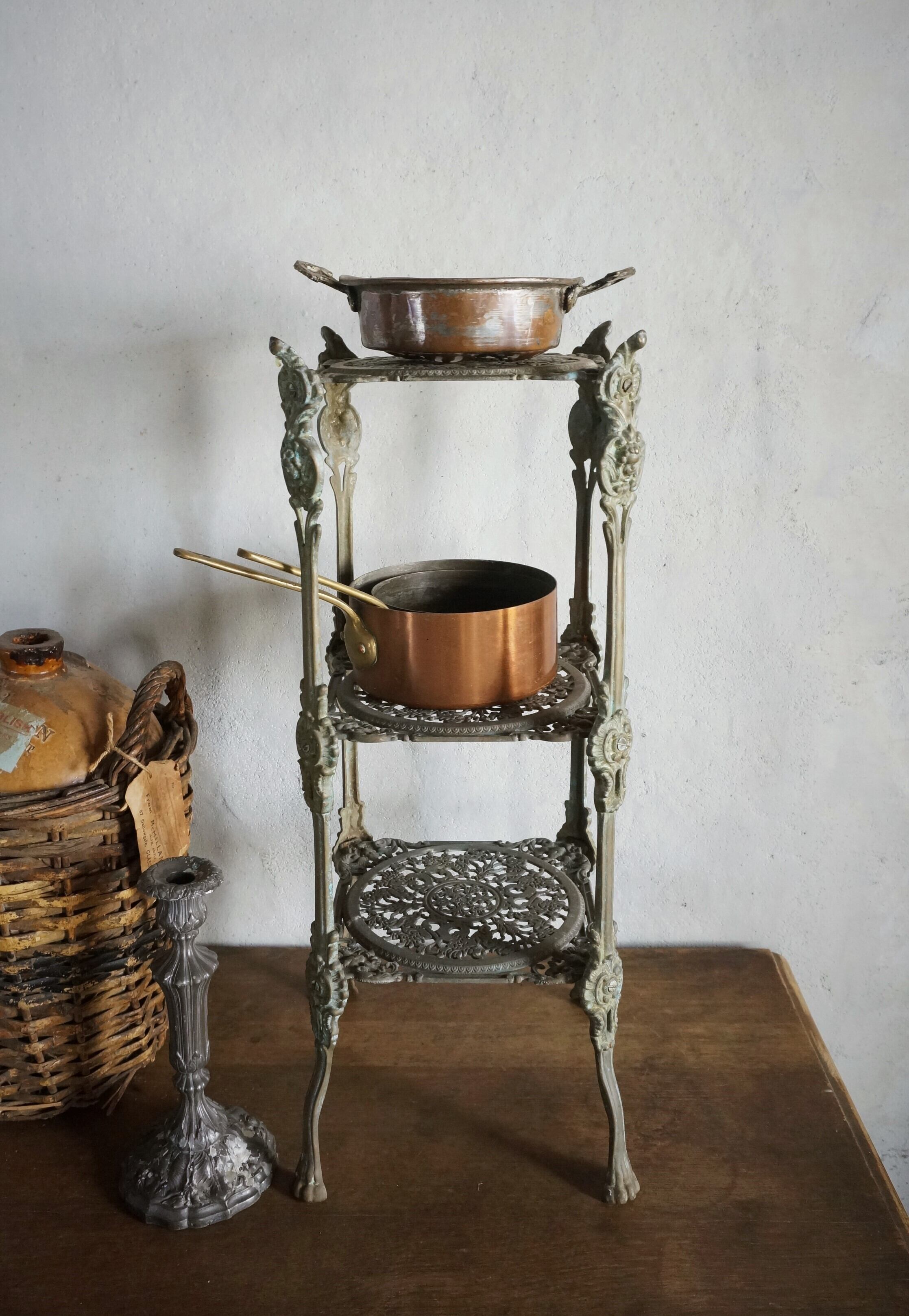 イギリス オールドコッパーパン&ポットスタンド Eo-23c