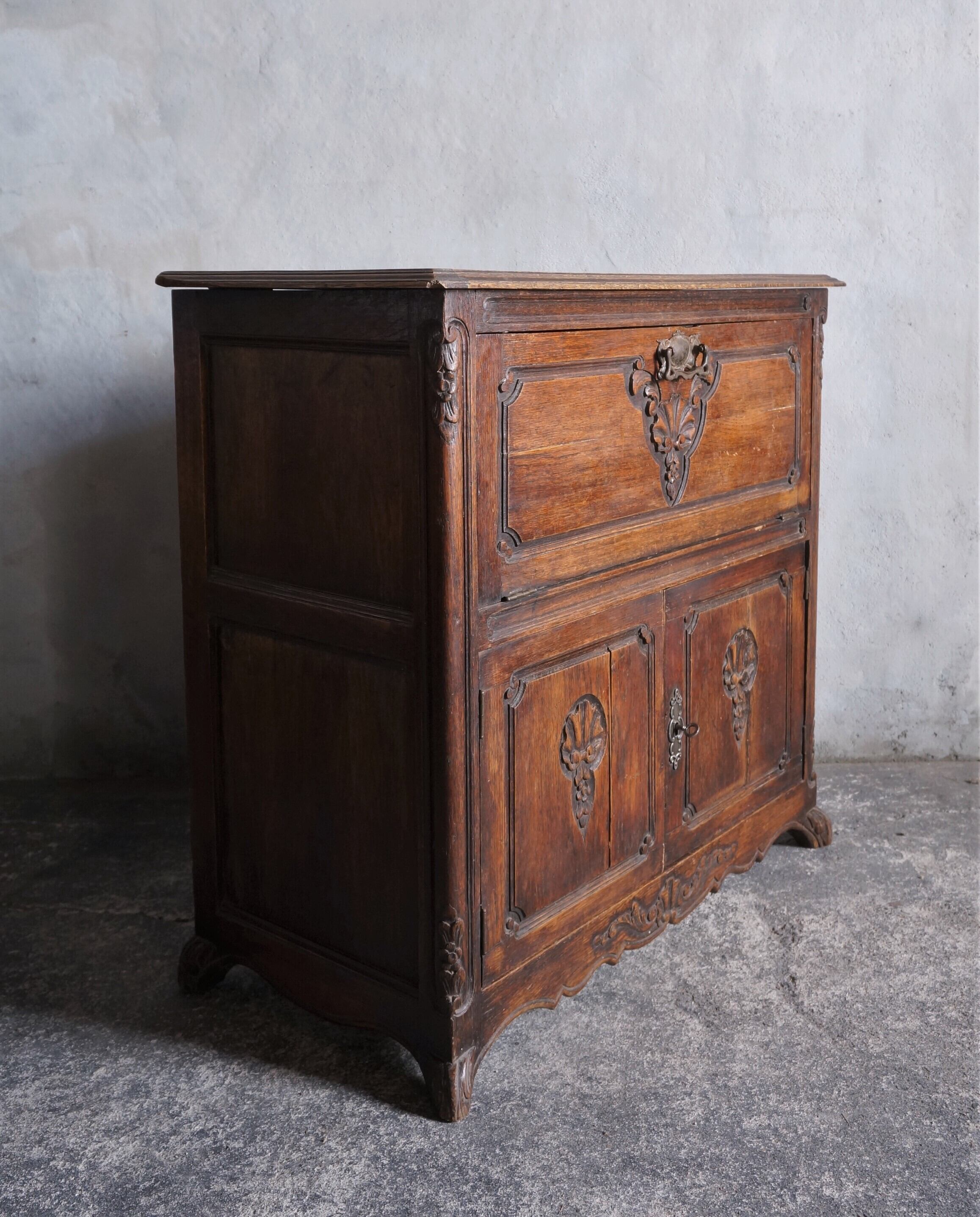 下段の扉には、左右両方ともに乾燥による割れが