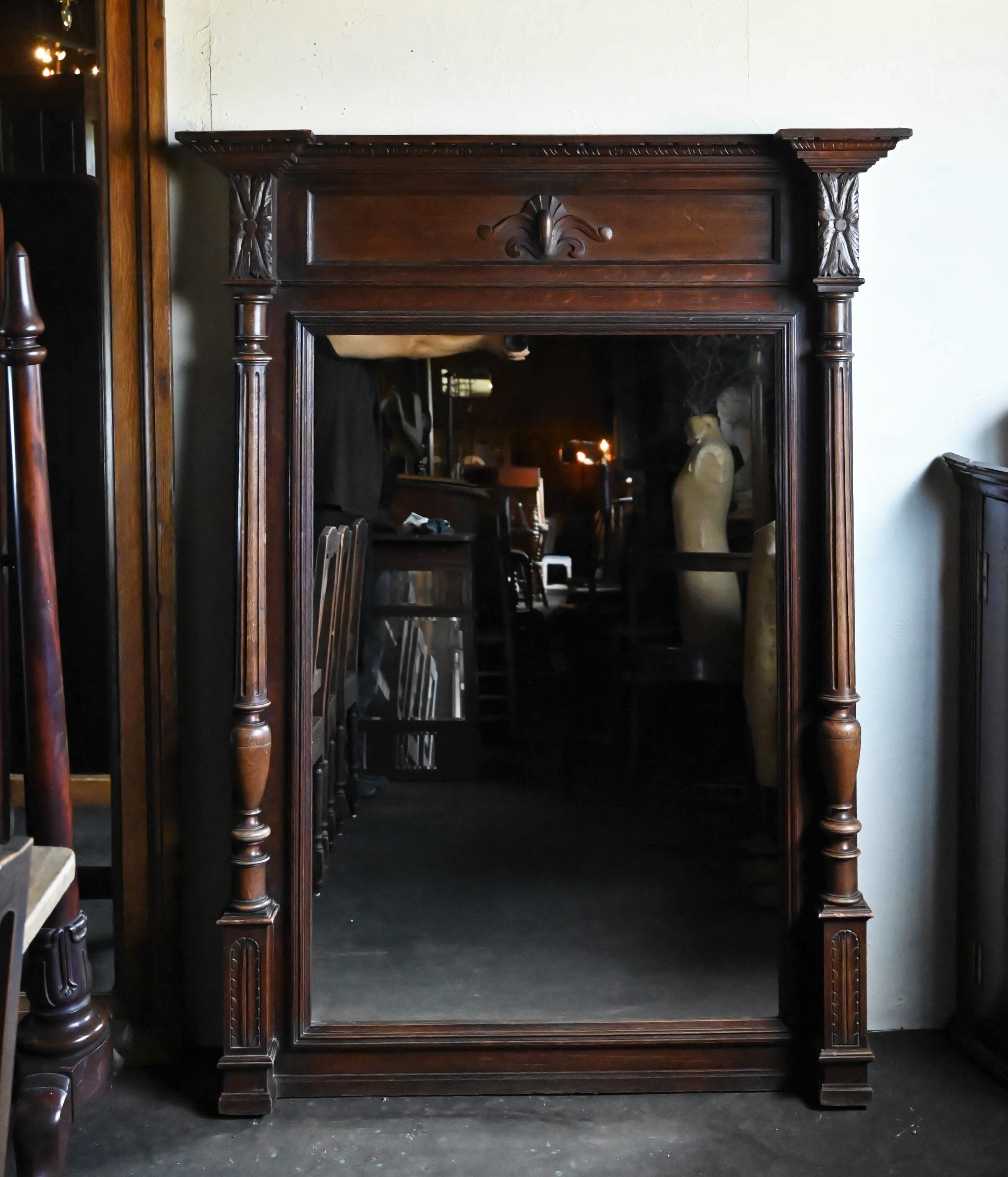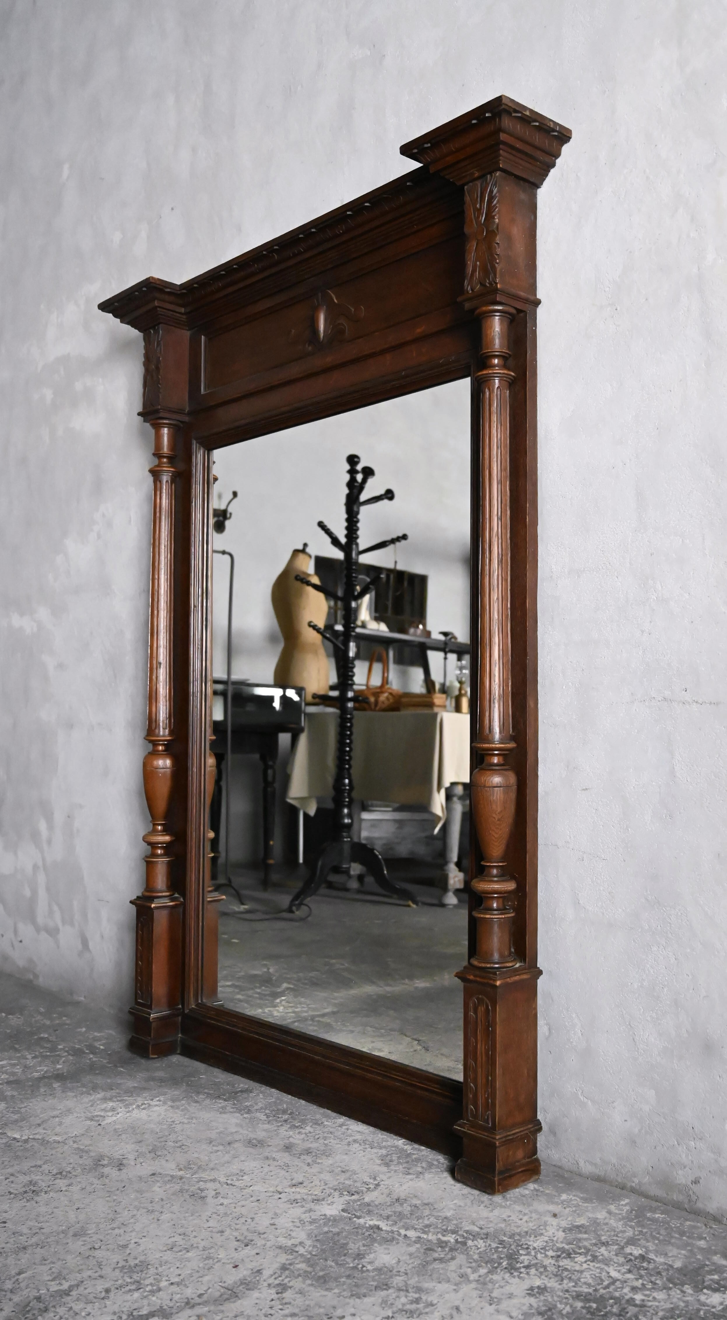 両サイドの美しいコラムと見事な木彫装飾、