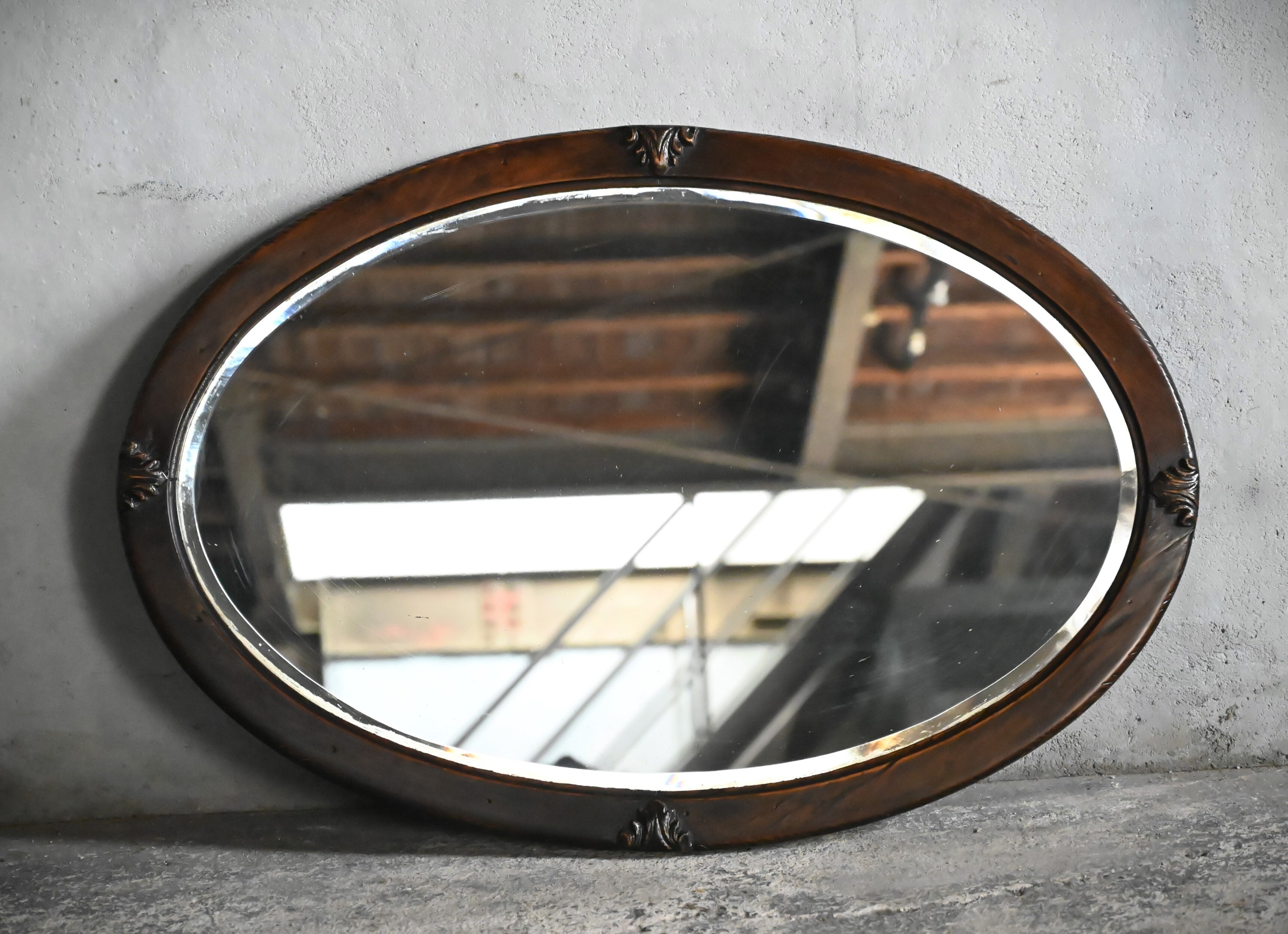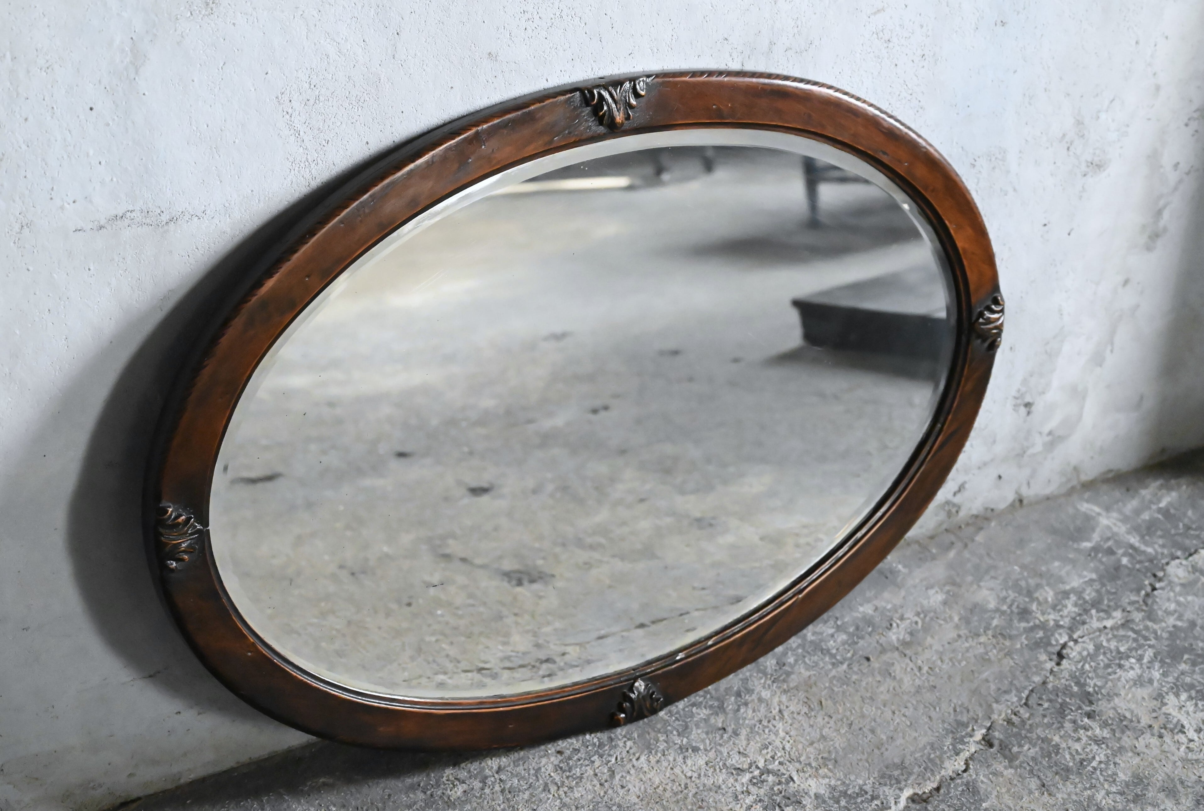 入れられたオーバルのウォールミラーです。