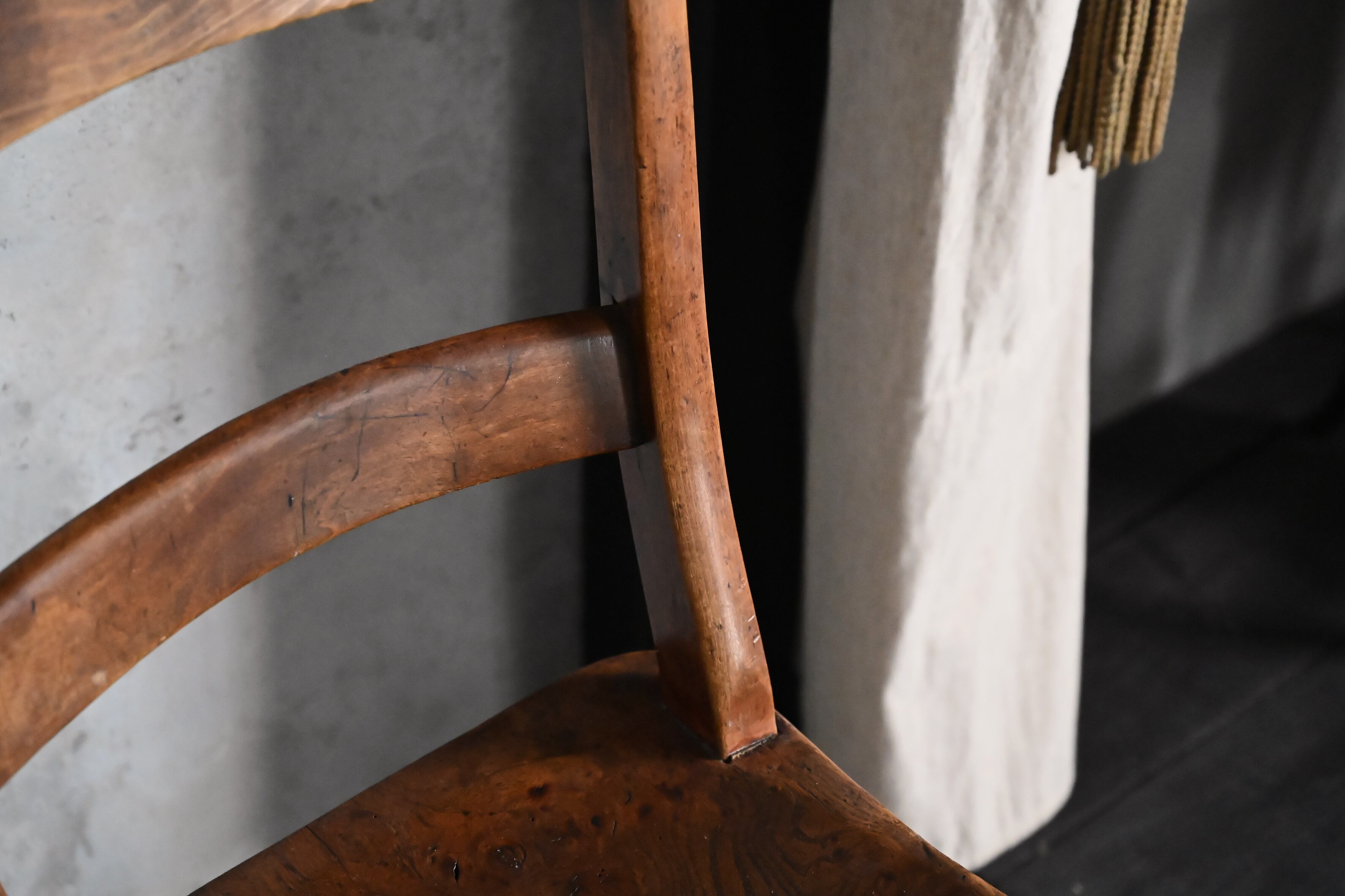 座面のエルム材の杢目とスクロール