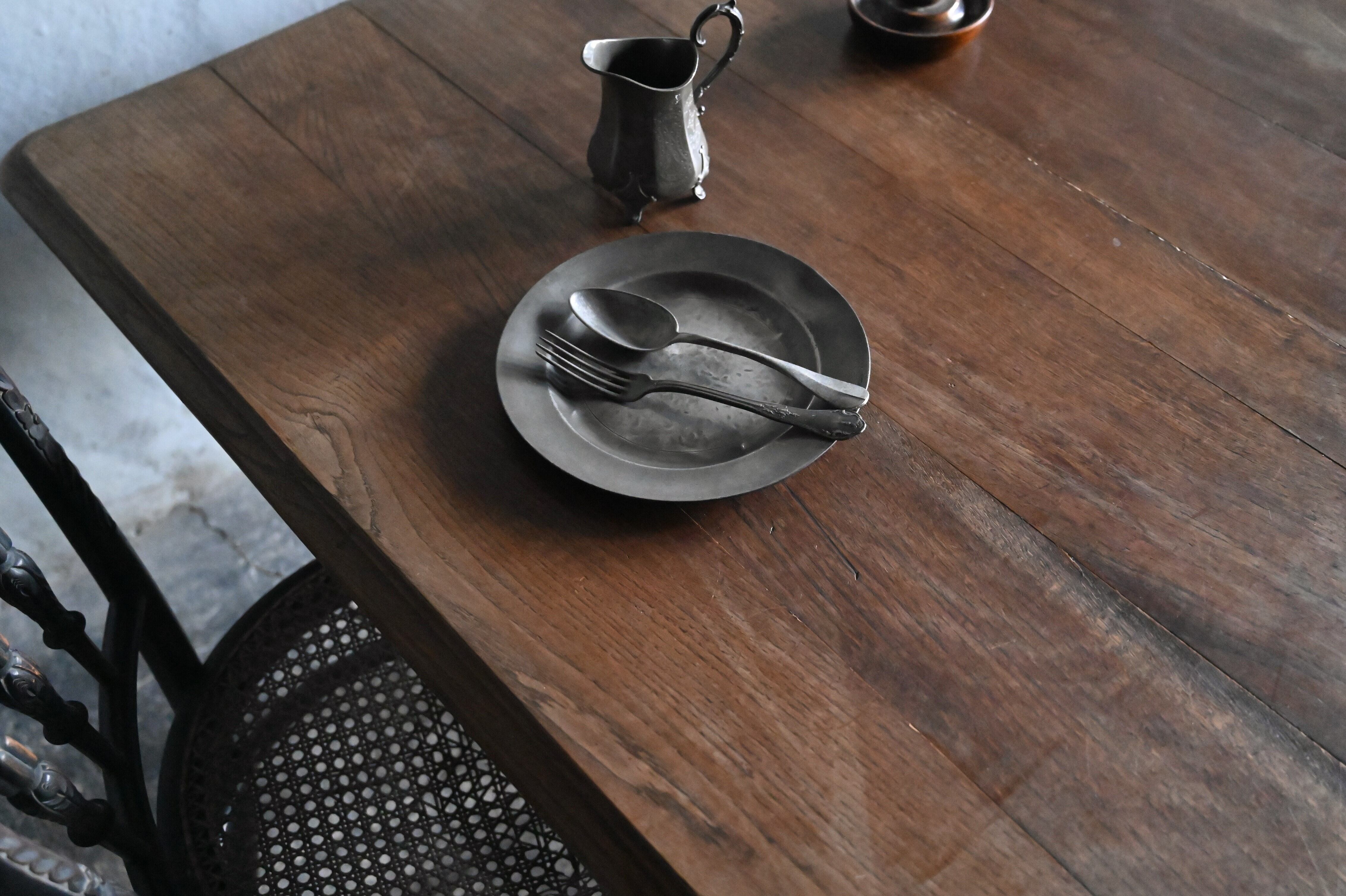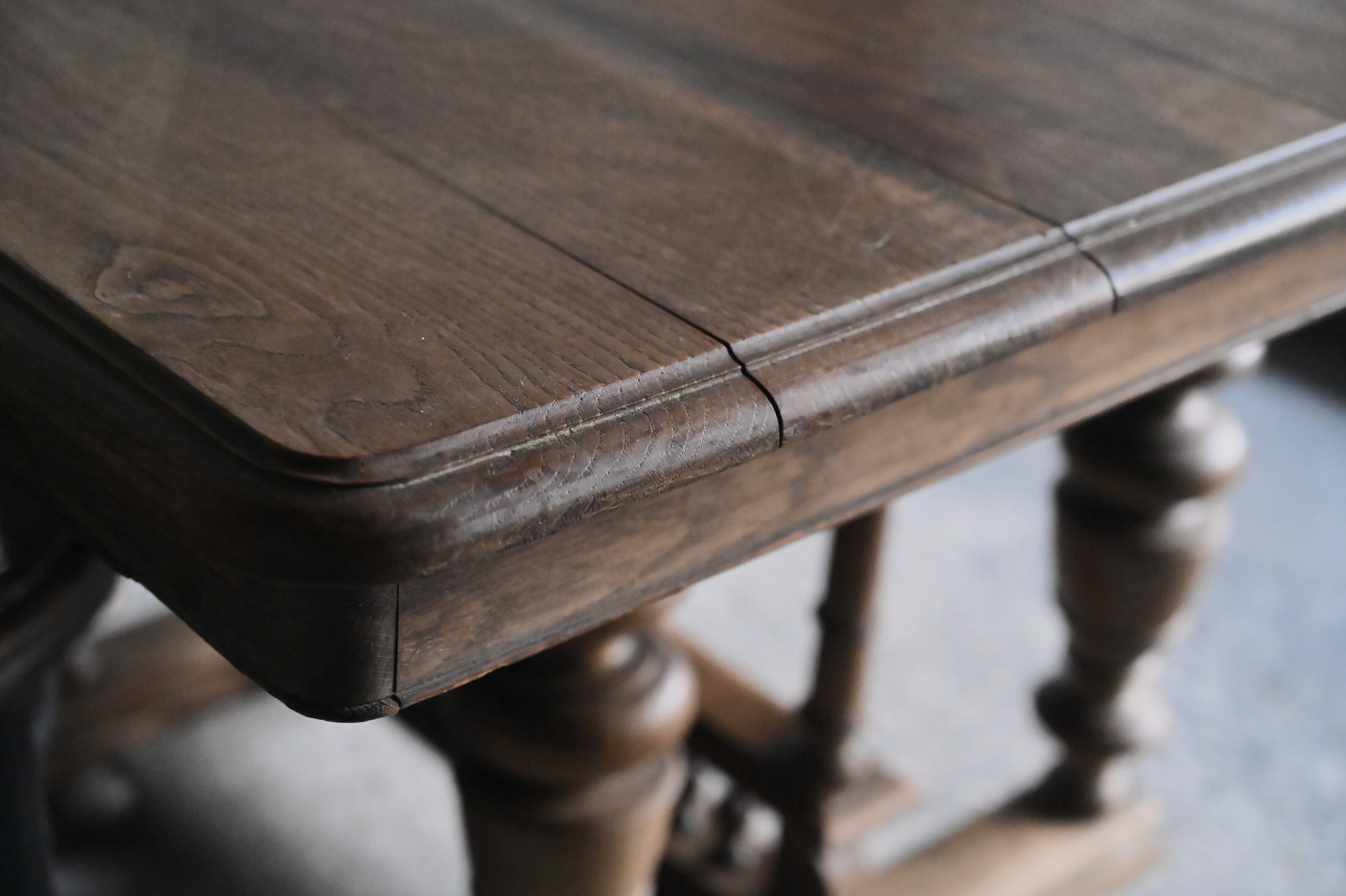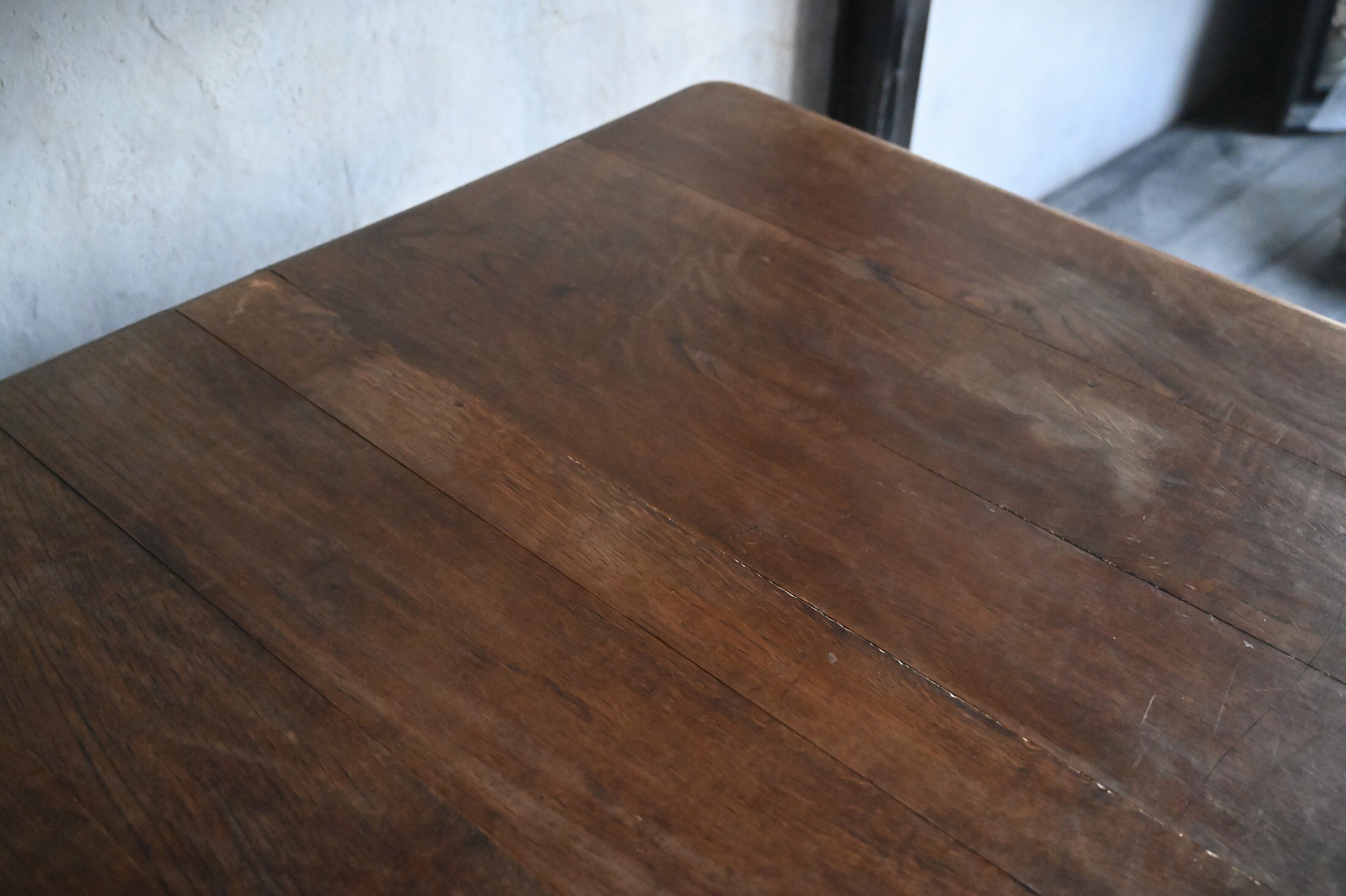 今回のテーブルは、アンティークのオーク材の